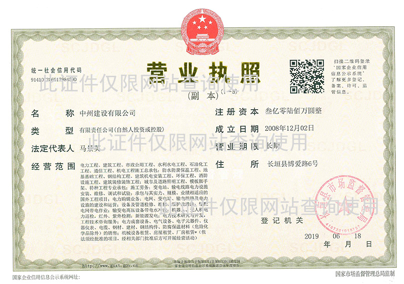 近日,中州建設有限公司新增兩項施工許可資質。公司在原有資質基礎上,成功獲批住房和城鄉建設部石油化工工程施工總承包壹級資質和河南省市場監督管理局核準的承壓類特種設備安裝、修理、改造生產許可資質。
